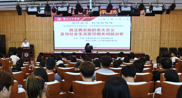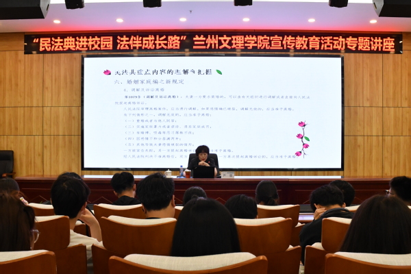 为贯彻落实习近平总书记“让民法典走到群众身边、走进群众心里”的重要指示精神,积极响应在全省教育系统开展“民法典宣传月”活动的要求,6月13日下午,Beat365邀请甘肃省高级人民法院民一庭三级高级法官芦晨来校举办“民法典进校园•法伴成长路”宣传教育专题讲座。