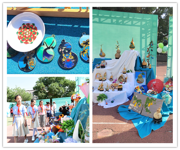 此次成果汇报展精选了2023年上半年剪纸兴趣班和扎染兴趣班50多名同学优秀剪纸、扎染作品100多幅;同时展出的有雁东路小学美术教师们精心打造的“葫芦工坊”产出的掐丝艺术、葫芦绘画、烙画和扇面等丰富多样的作品。展览品种丰富、工艺精湛,蕴含了中华优秀传统文化和甘肃地域文化的精神,彰显了甘肃非遗手工艺术的魅力。