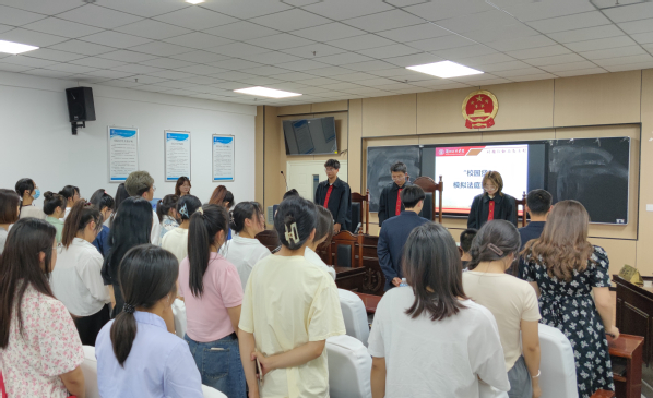 模拟法庭分为法庭调查阶段、法庭举证阶段、法庭辩论阶段、法庭判决阶段进行。在庄严肃穆的庭审现场,同学们惟妙惟肖地展示了法律工作人员的认真严谨、一丝不苟的工作态度以及公平、公正的法律工作精神,让在场旁听的同学真正融入进整个审判过程中。通过组织同学们参与、旁听“法庭”的“案件审理”,用发生在同学们身边的、具有典型教育义的案例,以案说法,共同分析犯罪的原因,总结教训,帮助同学们在实践中学法、知法、懂法。