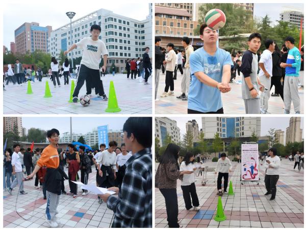 同学们环绕图书馆、明德楼、励志楼、致远楼、笃行楼、实验剧场、文昌楼、艺苑楼、艺术实践中心、安亭广场等学校标志性建筑,以奔跑的姿态拥抱大学生活。环校园四圈的健康跑结束后,同学们纷纷前往安亭广场参加“青春红丝带”——“绳彩飞扬”“斗转星移”“弹跳乒乓”“排山倒海”等活动,在计时跳绳、足球绕桩、乒乓球运球、排球垫球的同时,参与到预防艾滋病宣传教育的知识问答中,赢取精美奖品。