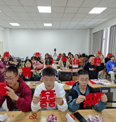 叶长友为同学们详细介绍了剪纸的历史、内涵、表现形式、技艺传承与创新。他以一张张富有特色的剪纸作品作为案例,对其作品的创作思路和创作过程进行了介绍,并为剪纸创作提供了创新性指引方向。随后教授了“喜”字的剪纸方法,以此为契机,鼓励同学们大胆想象、大胆构思、大胆尝试,巧妙运用技巧将纹样、图谱等要素大胆吸收、有机融入到作品里,创作出独一无二的艺术作品。