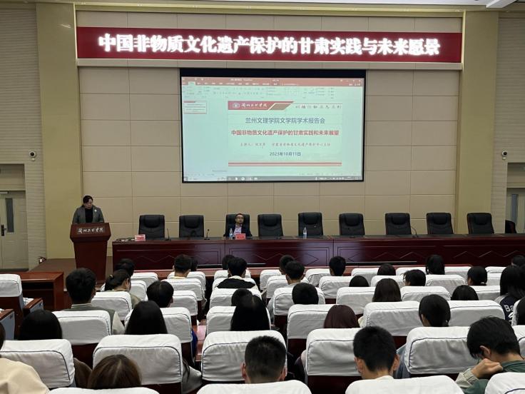 10月11日下午,文学院邀请甘肃省非物质文化遗产保护中心主任刘卫华在致远楼学术报告厅作题为《中国非物质文化遗产保护的甘肃实践与未来愿景》的学术讲座。文学院领导班子成员、师生二百余人参加讲座。