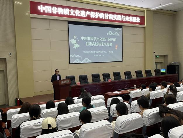 讲座从非遗的源起、中国非遗保护及甘肃非遗的未来与展望三个方面展开讲述,对我国非遗保护的政策演进、全国及各级政府针对非遗保护与传承所开展的系列工作,及甘肃非物质文化遗产的保护实践情况做了精彩纷呈的讲解。指出,当前非遗的发展进入系统化保护的新阶段,对非遗保护工作从业者的知识、能力和素质等方面提出了更高要求,我们要深刻把握中国非物质文化遗产保护的重大意义,加强非遗专业人才和非遗学科建设,服务甘肃非遗事业,加强对非遗的理论认识,不断提高非遗保护水平,不断增强非遗保护的思想自觉和行动自觉,进一步推动甘肃非遗建设的信心和决心。