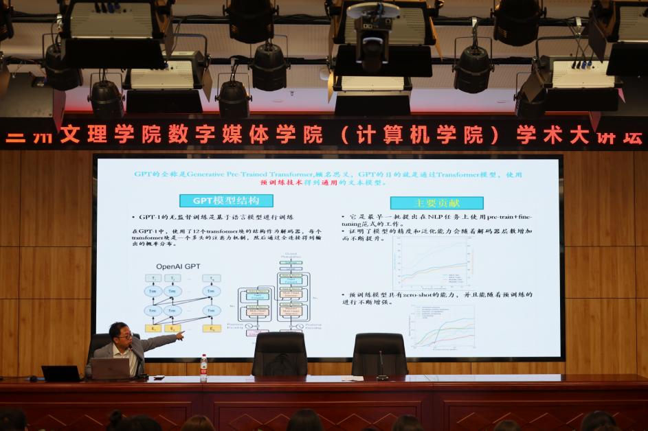 万福成首先对西北民族大学中国民族信息技术研究院进行简要介绍;随后详细介绍了大模型技术的发展历程和现状,重点讲解了其在自然语言生成领域的应用,他强调在自然语言生成方面,大模型技术已经取得了显著成果;最后万福成与学生进行互动,对学生的疑问进行解答。